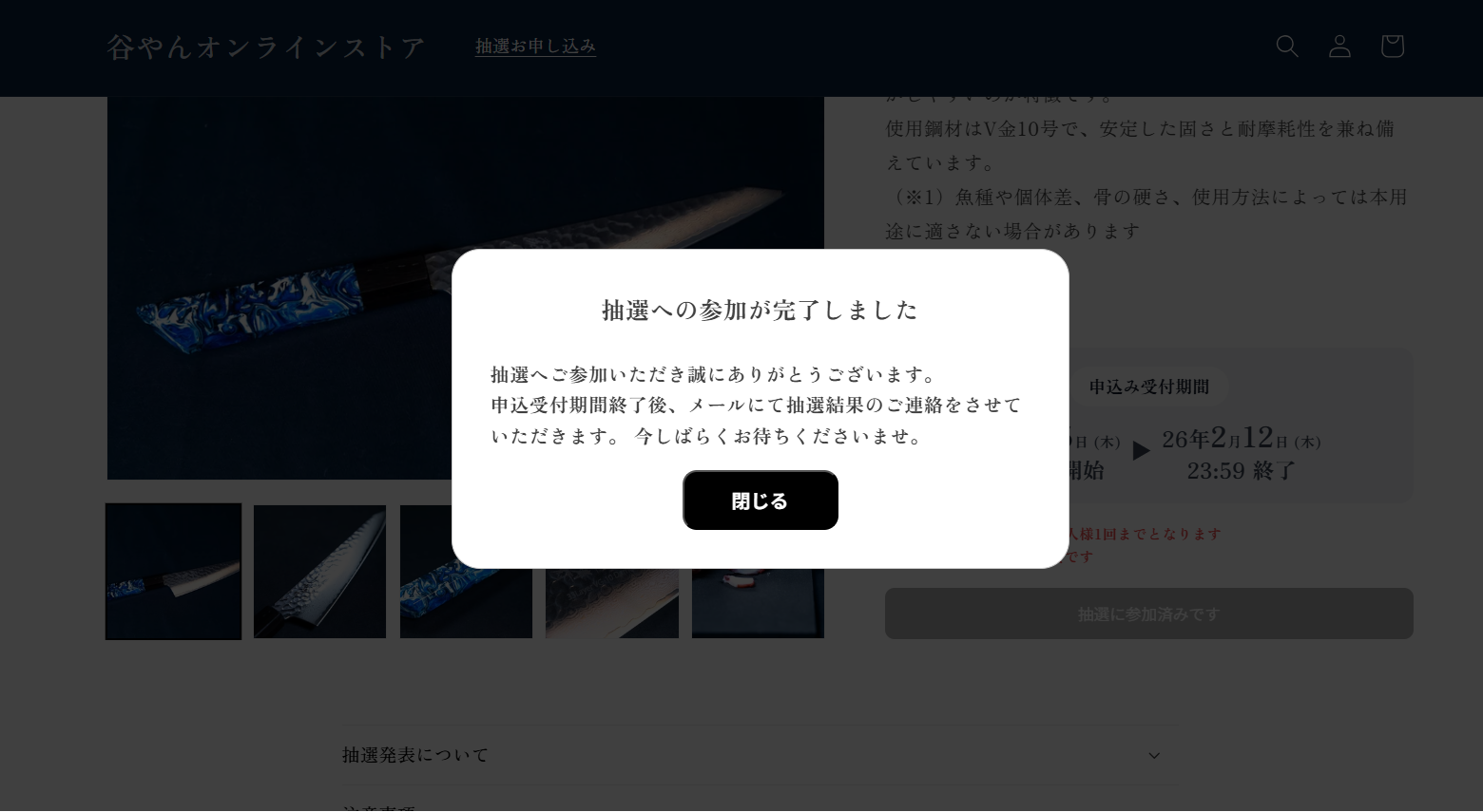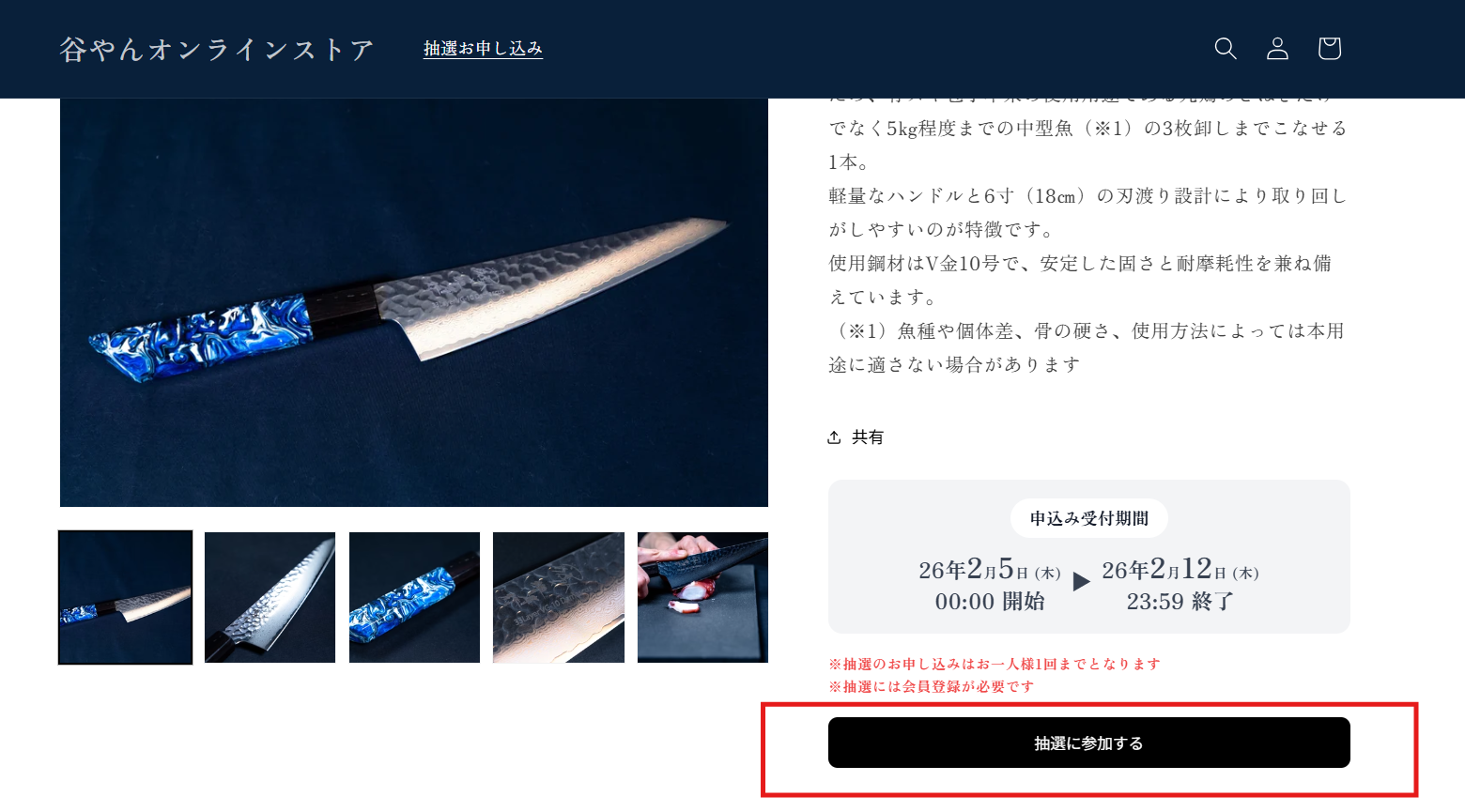 商品ページから、抽選に参加することが可能です。